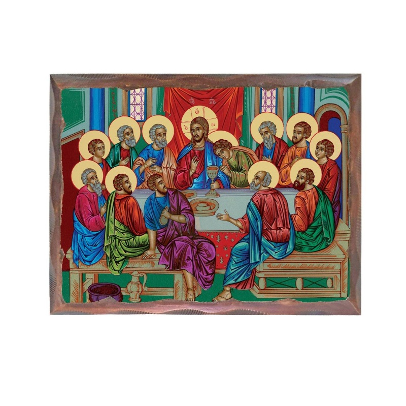 Μυστικός Δείπνος σε καμβά με φύλλο χρυσού σε ξύλο πεύκο και διάσταση : 15 x 12 εκ.
