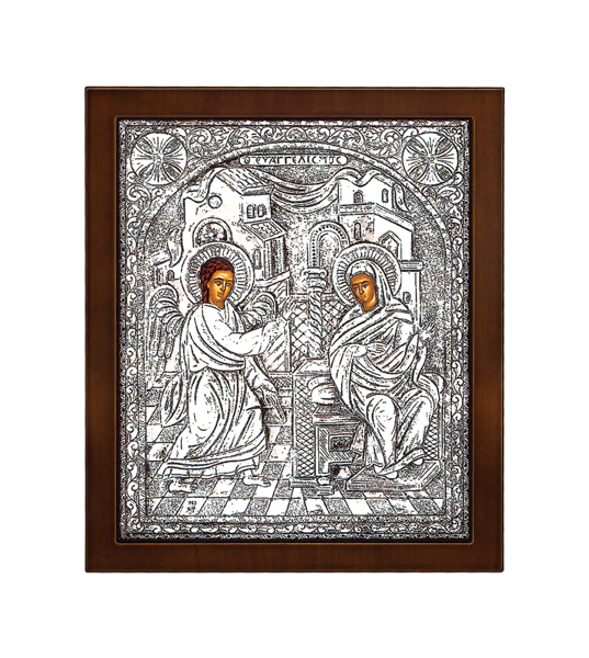 Ο Ευαγγελισμός με φύλλο ασημιού 925° σε διάσταση : 27 x 22 εκ.