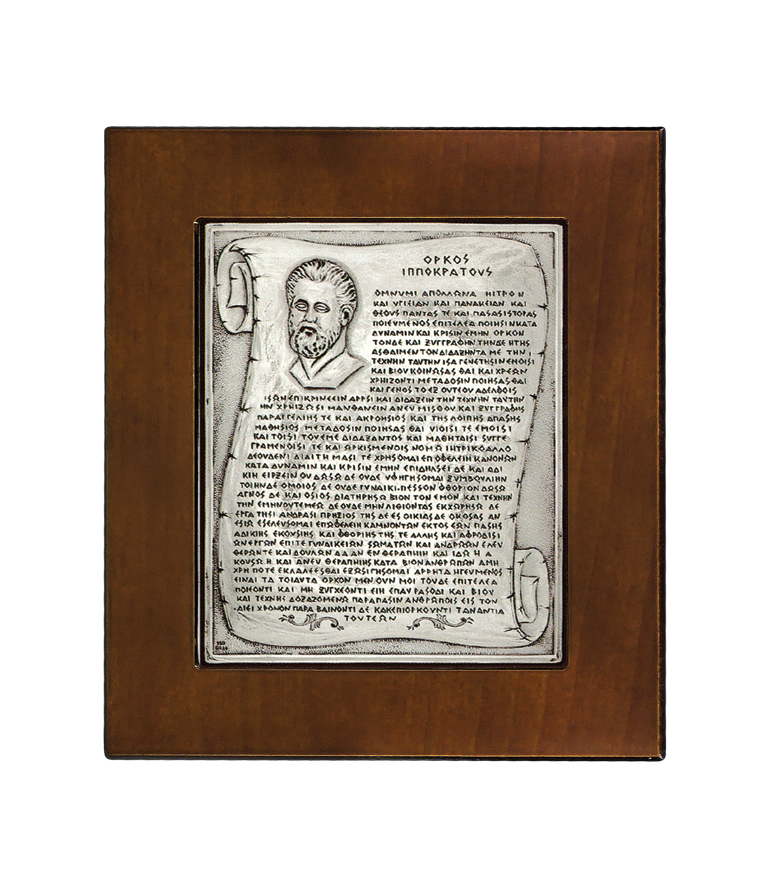 Όρκος ασημένιος ή επάργυρος 925° Ιπποκράτους-Θέμιδος σε διάσταση : 19 x 16 εκ.