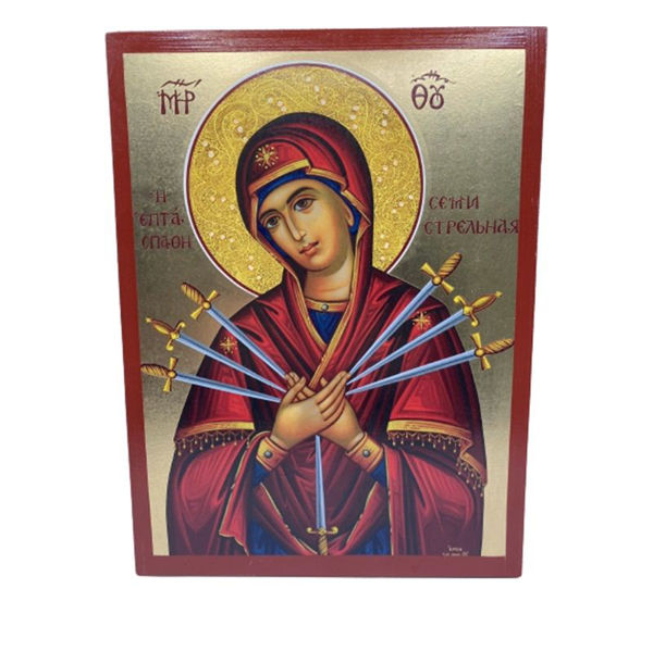 Παναγία Επτάσπαθη σε mdf με φύλλο χρυσού και βερνίκι σε διάσταση : 26 x 20 εκ.