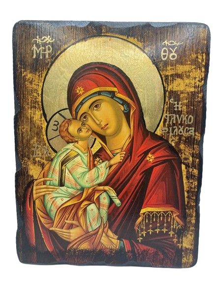 Παναγία Γλυκοφιλούσα σε ξύλο ελάτης με παλαίωση και βερνίκι σε διάσταση : 15 x 10 εκ.