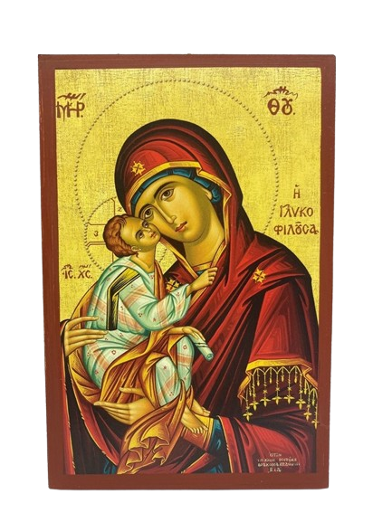 Παναγία Γλυκοφιλούσα σε ξύλο Mdf με βερνίκι σε διάσταση : 35 x 25 εκ.