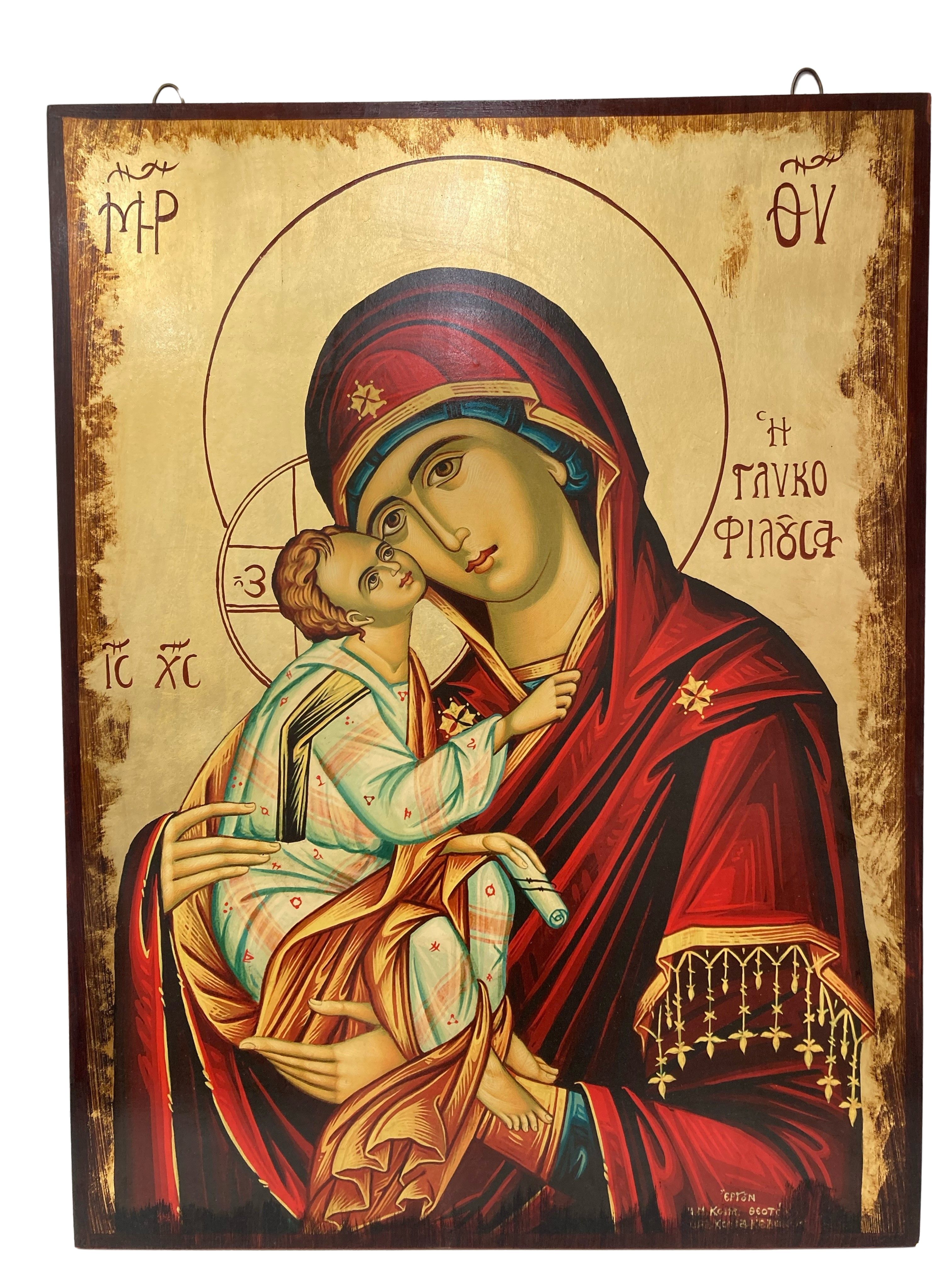 Παναγία Γλυκοφιλούσα σε MDF ξύλο με φύλλο χρυσού,χειροποίητη παλάιωση και βερνίκι σε διάσταση : 80 x 60 εκ.