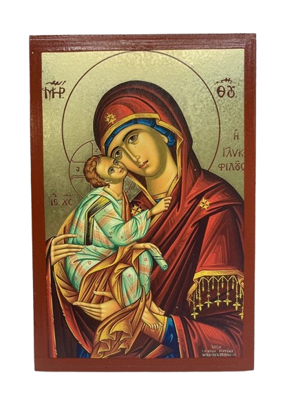 Παναγία Γλυκοφιλούσα σε mdf με φύλλο χρυσού και βερνίκι σε διάσταση : 15 x 10 εκ.