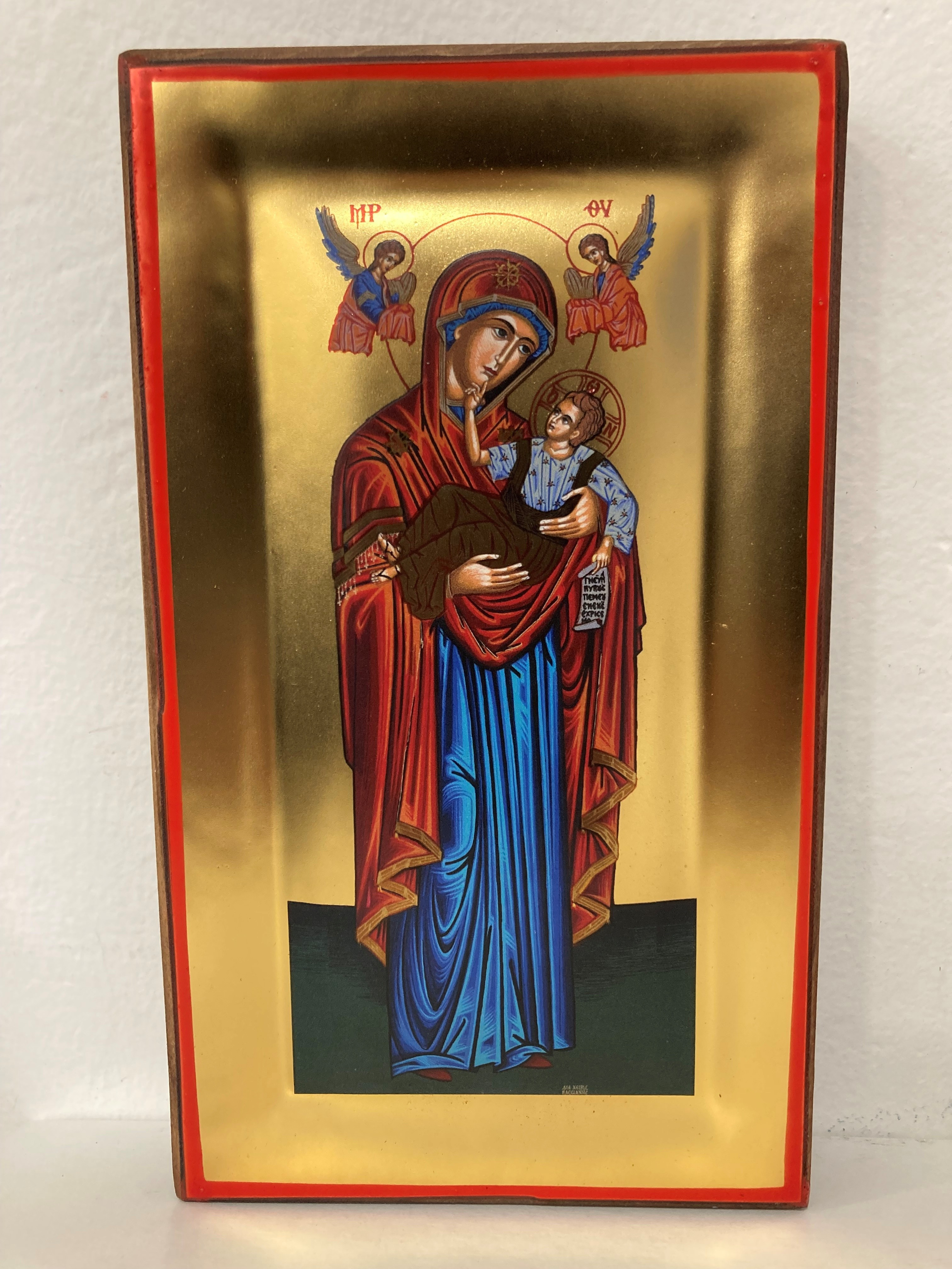 Παναγία σε σκαφτό ξύλο με φύλλο χρυσού και διάσταση : 19 x 11 εκ.