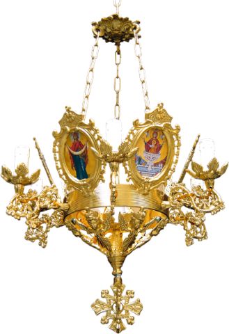 Πολυέλαιος αλουμινίου με κορνίζα αγίου με 7 φώτα σε 2 αποχρώσεις και διάσταση : 50 x 57 εκ.