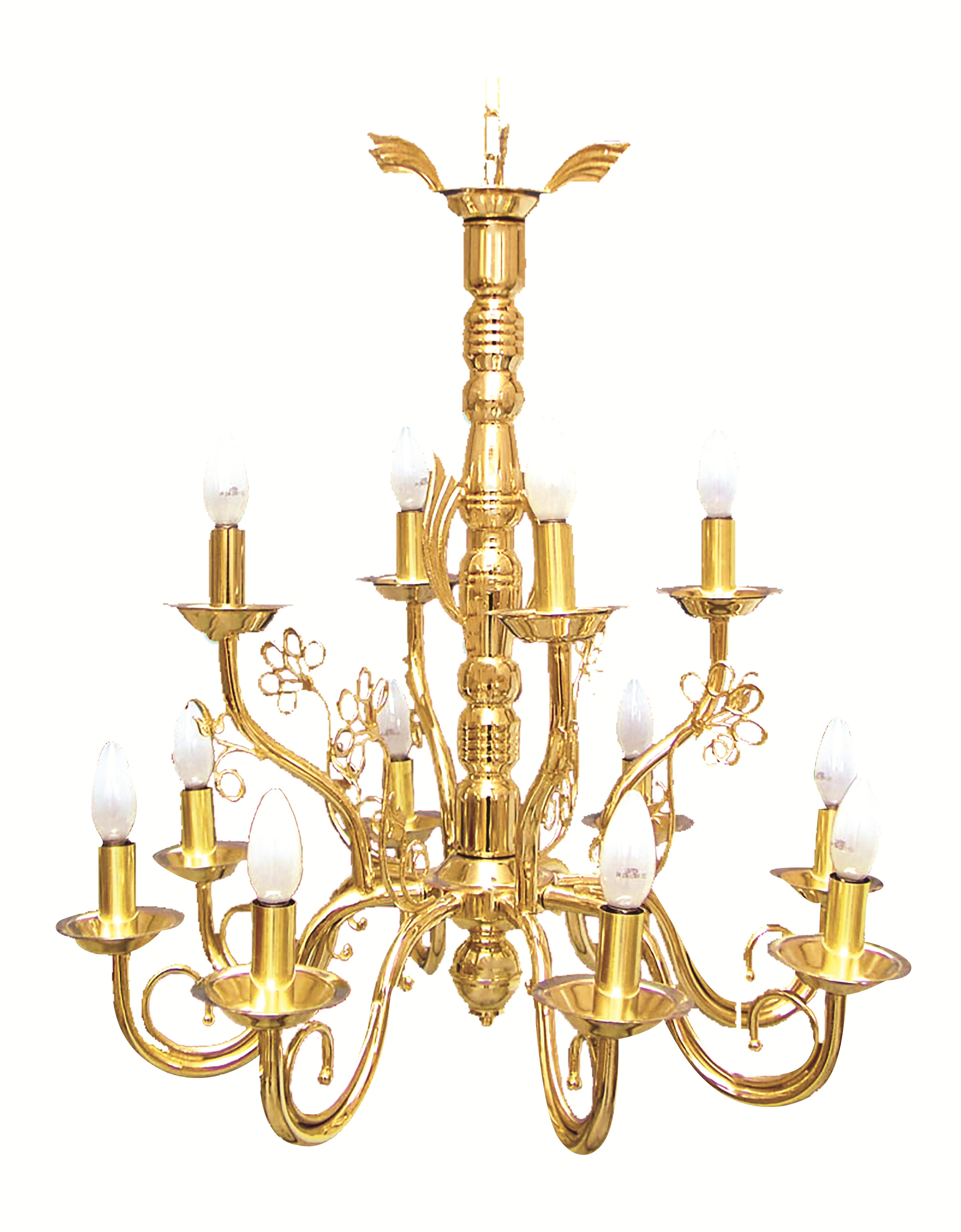 Πολυέλαιος σωληνωτός λείος 12 φωτών επίχρυσος, 64 x 64 x 72 εκ.