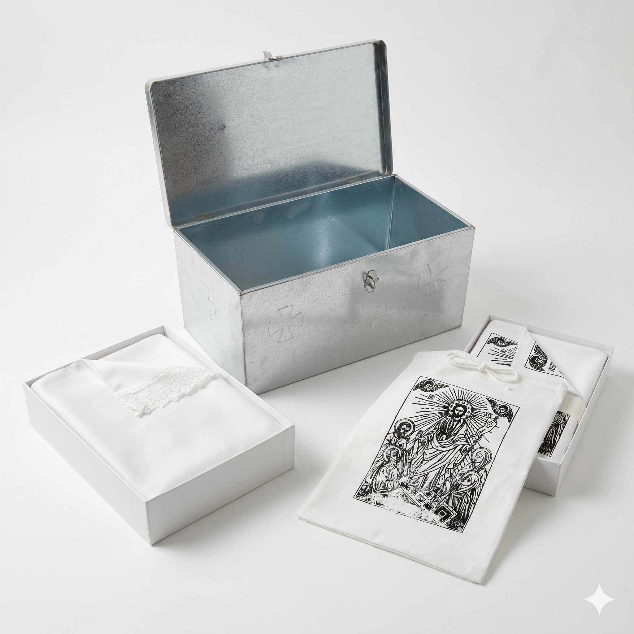 Σετ εκταφής (οστεοθήκη μονή γαλβανιζέ άντυτη,σάκος και σεντόνι)