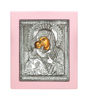 Εικόνα ασημένια 950° με αγίους σε χρώμα γαλάζιο ή ροζ και διάσταση : 17 x 14 εκ.