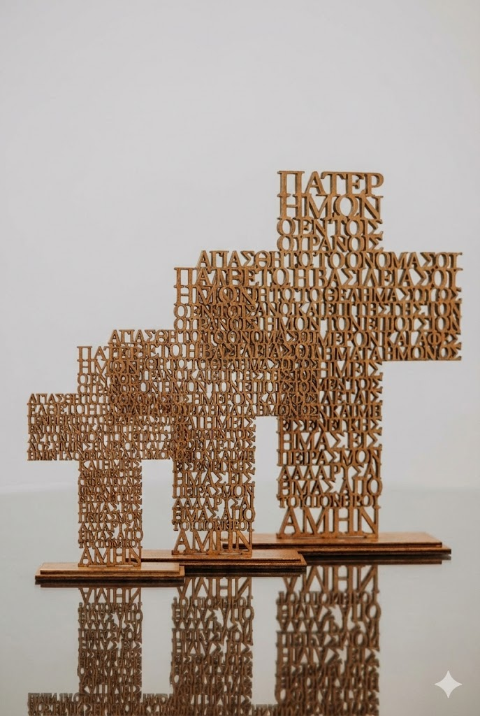 Σταυρός Πάτερ Ημών επιτραπέζιος χειροποίητος ξυλόγλυπτος σε 3 διαφορετικά μεγέθη.