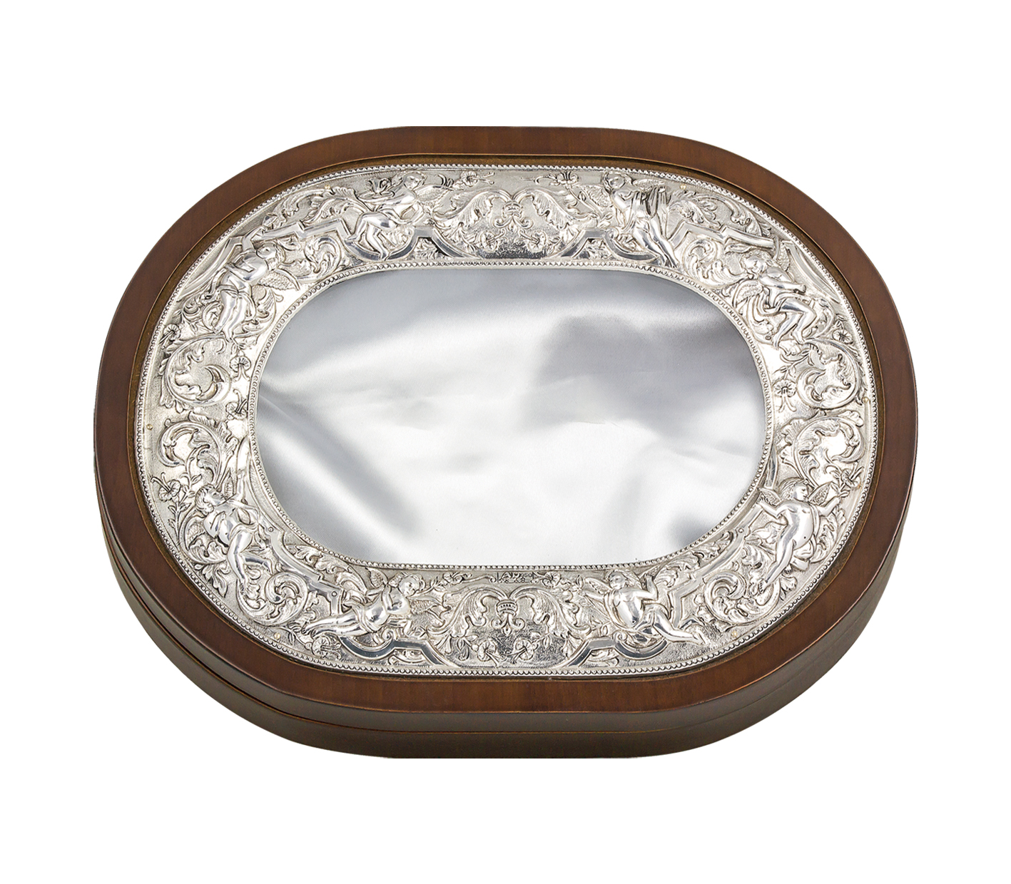 Στεφανοθήκη ασημένια 950° οβάλ σε διάσταση : 30 x 23 εκ