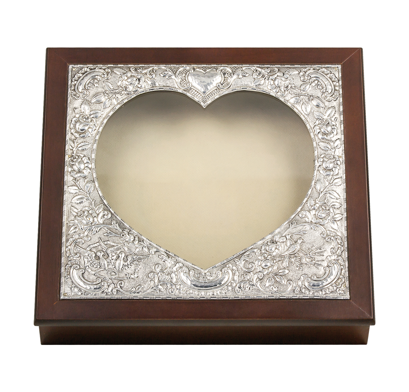 Ασημένια ή επάργυρη στεφανοθήκη 925° τετράγωνη με καρδιά σε διάσταση : 28,5 x 26,5 εκ.