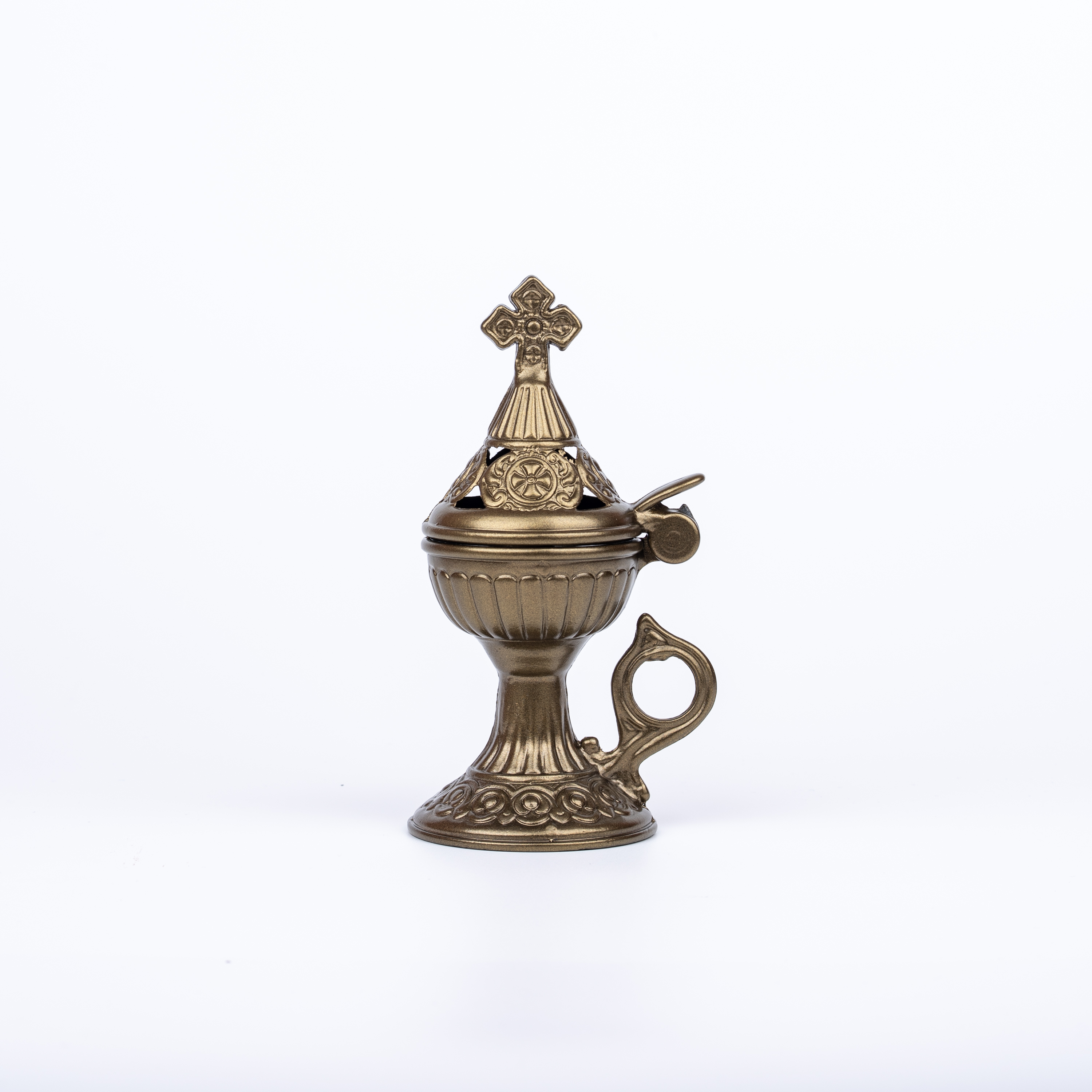 Θυμιατό μεταλλικό μικρό σε χρώμα λαδί και διάσταση : 15 x 8 εκ.