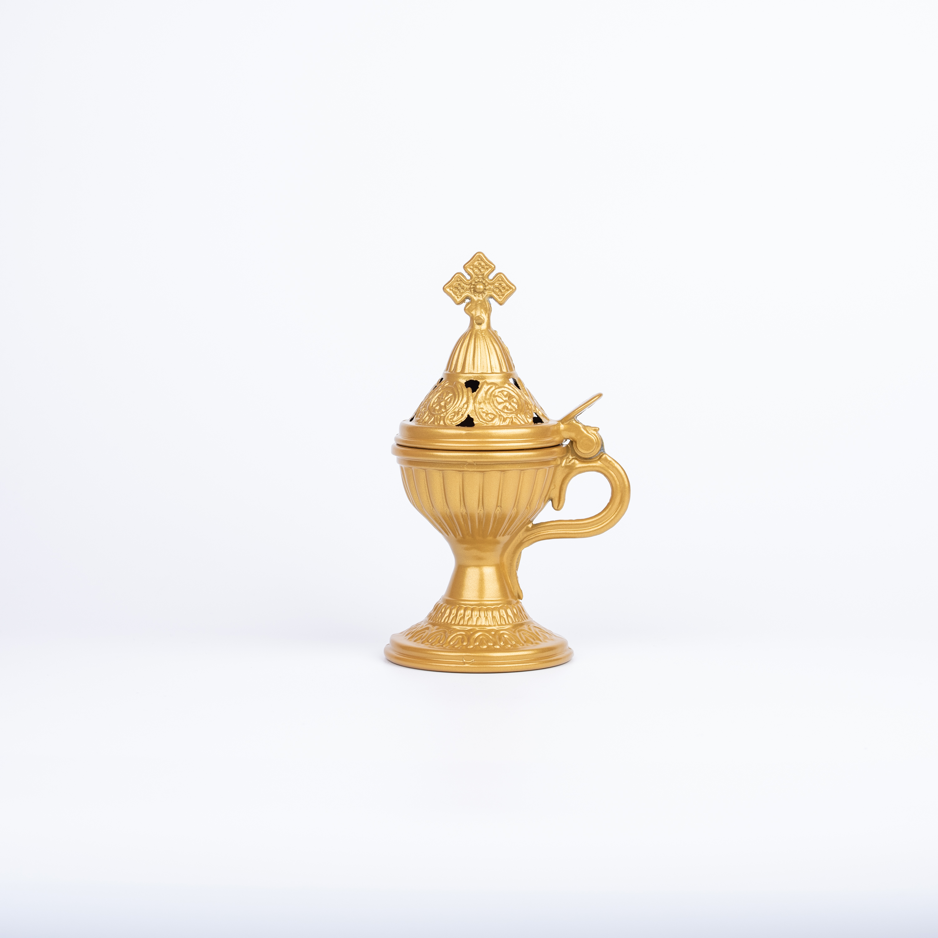 Θυμιατό μεταλλικό μικρό σε χρώμα χρυσό και διάσταση : 15 x 8 εκ.