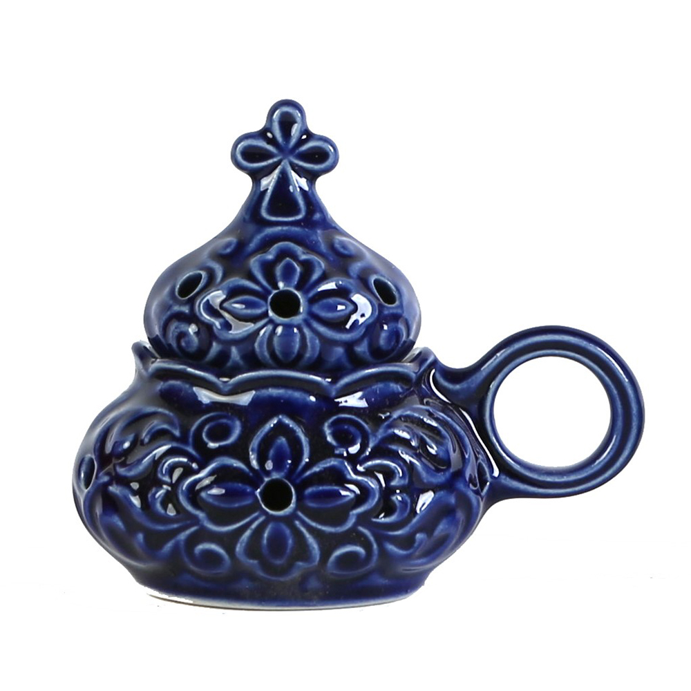 Θυμιατό πήλινο οικιακό κλειστό με ψηλό καπάκι σε χρώμα μπλε και διάσταση : 9,5 x 9 εκ.