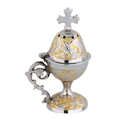 Θυμιατό οικιακό ορειχάλκινο σκαλιστό δίχρωμο σε διάσταση : 14 εκ.