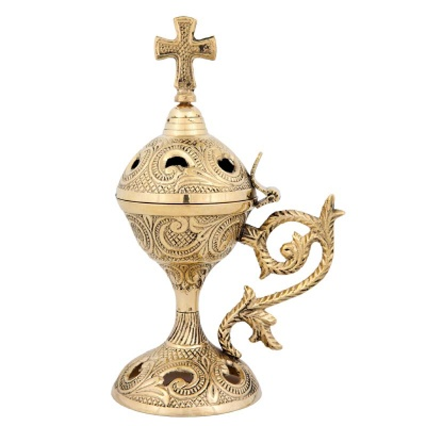 Θυμιατό οικιακό ορειχάλκινο σκαλιστό επίχρυσο σε διάσταση : 18 εκ.