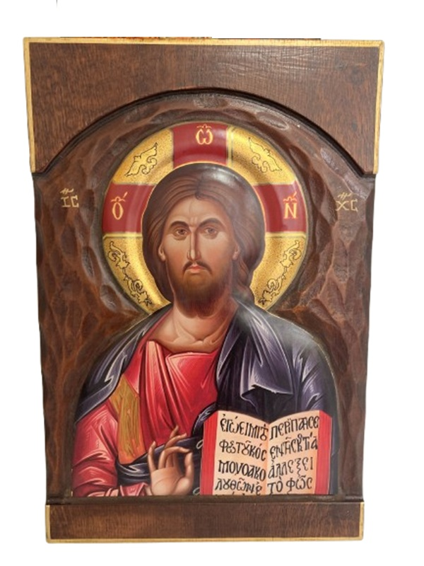 Χριστός σε καμβά με ανάγλυφο ξύλο πεύκο σε διάσταση : 60 x 40 εκ.